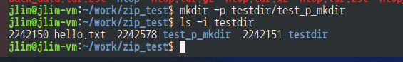 jlim@jlim-vm:~/work/zip_test$ mkdir -p testdir/test_p_mkdir