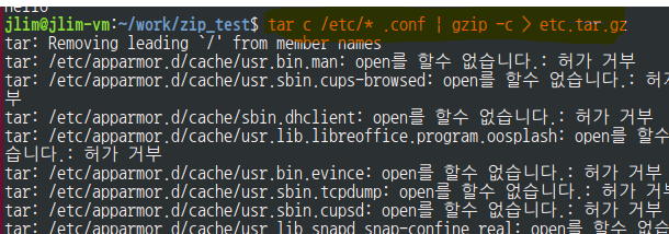 $ tar c . | gzip -c > bak_etc.tar.gz // 아카이브 생성및 압축