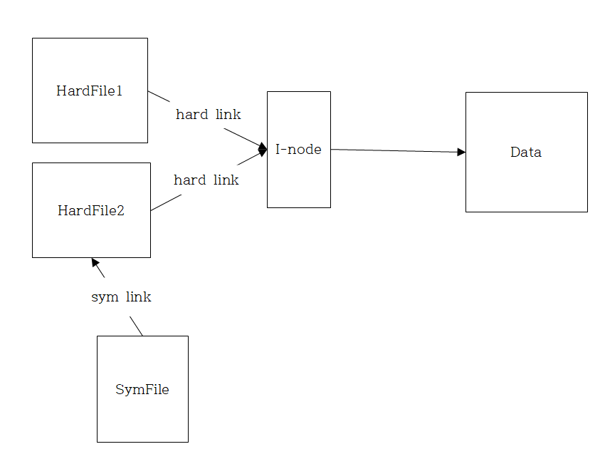 //sym link 확인 명령어 $ ls -l sym* hardlink