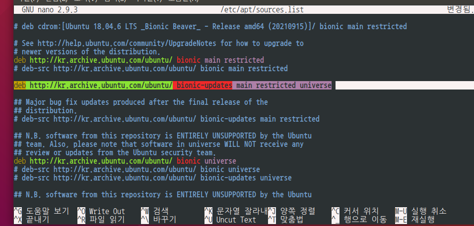 deb http://kr.archive.ubuntu.com/ubuntu/ bionic-updates main restricted universe