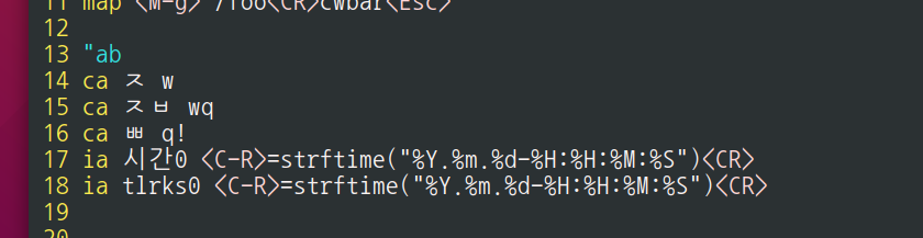 abbreviation 세팅을 vimrc에서 적용