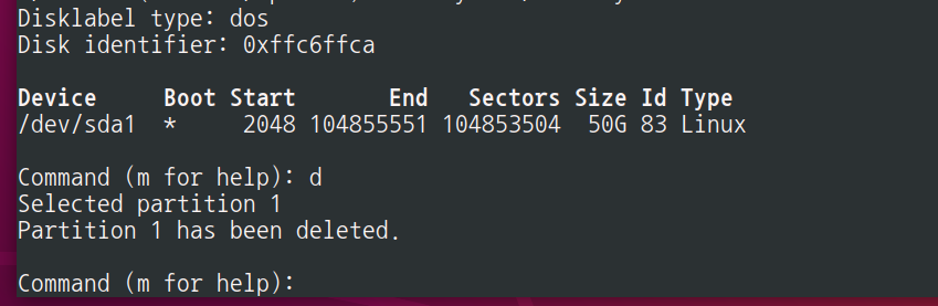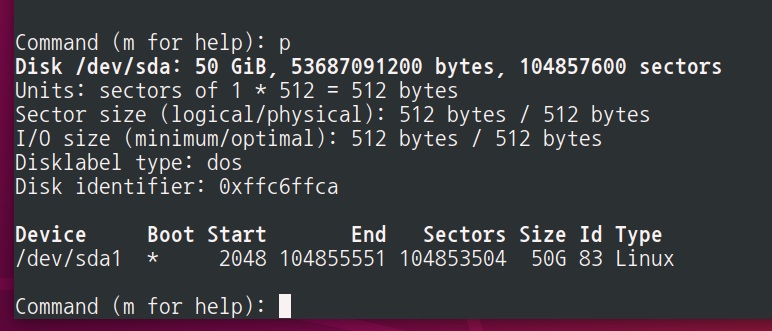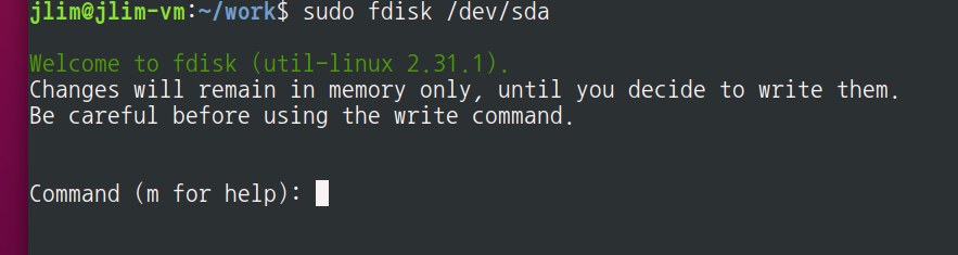 # fdisk /dev/sda '루트권한으로 작업하기