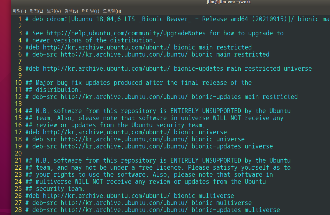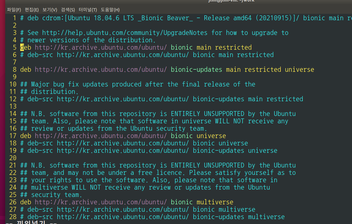 실제로는 apt edit-sources 명령어로 편집을 할 것이다.