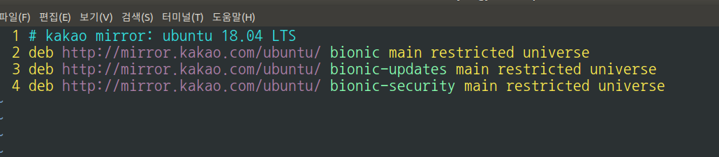 deb http://mirror.kakao.com/ubuntu/ bionic main restricted universe