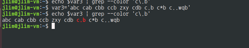 2) ERE인 수량자(*가 아닌 나머지, 상기 참조)는 \ (back slash)를 앞에 더해줘야만 grep 을 사용할 수 있다.