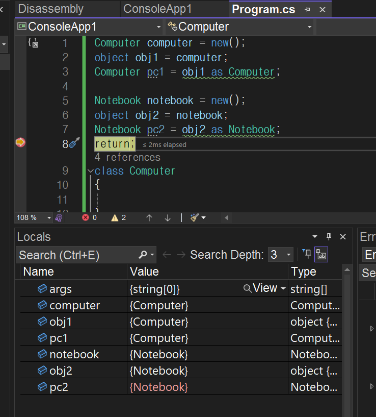 class 는 힙영역에 저장되는 타입이다.