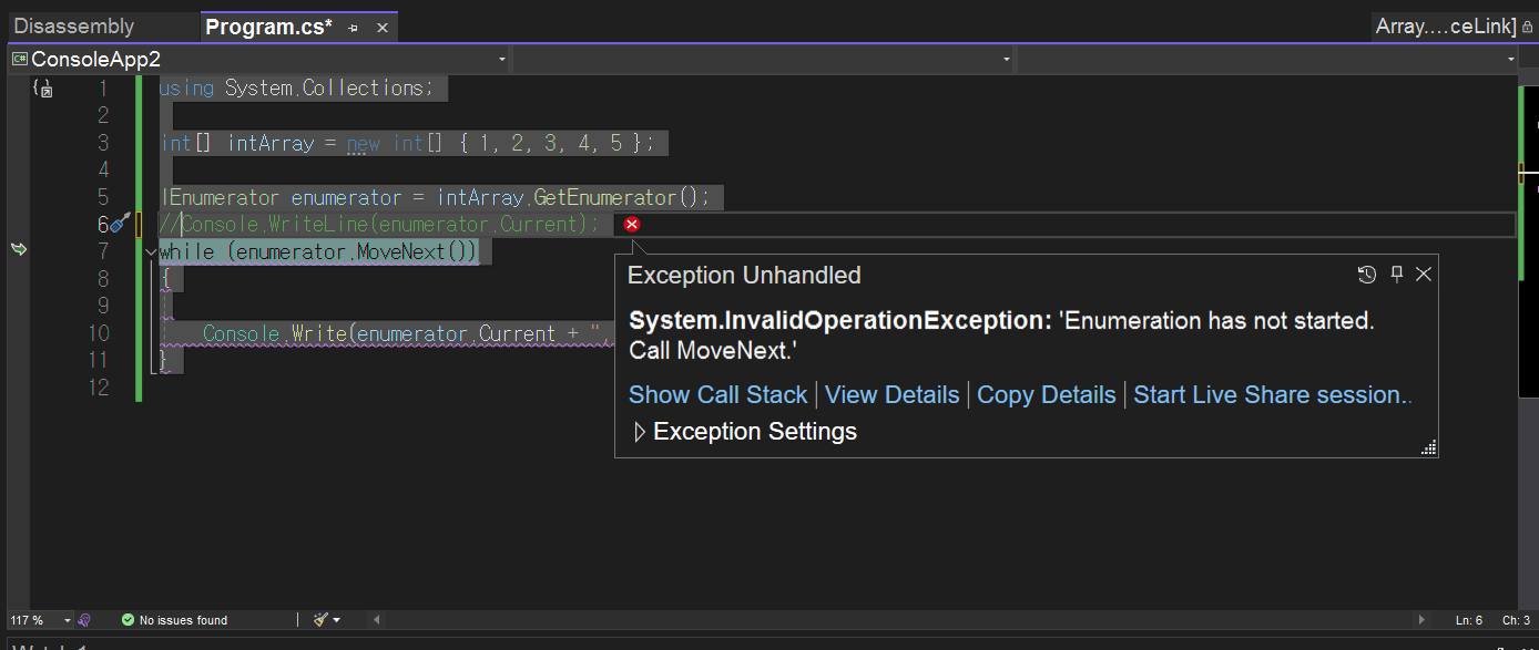 foreach(var item in notebook) // in 에서 MoveNext() 로 가네.