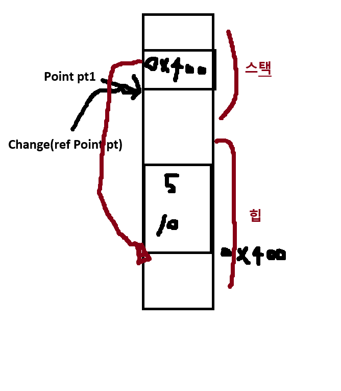 private static void Change2(ref Point? pt) // ref를 이용한 참조에 의한 호출