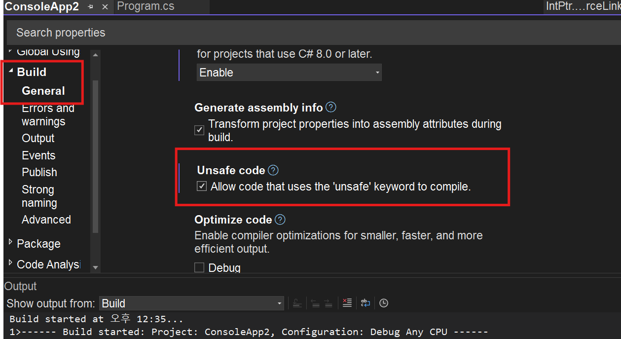 근데 컴파일에러가 아닌 컴파일경고만 뜸(CS8500)