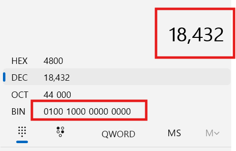 >> 2 시프트연산을 우측으로 2번 할 시 18432가 나온다,.