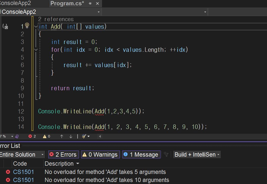 Console.WriteLine(Add(1, 2, 3, 4, 5, 6, 7, 8, 9, 10));