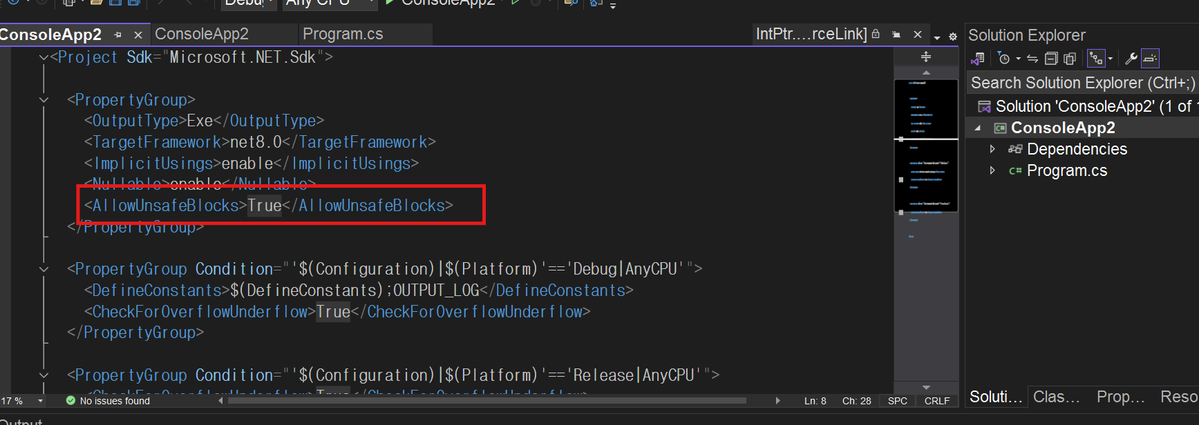 C# 철학: "unsafe는 네가 위험을 감수하겠다는 뜻이니, 컴파일러는 간섭 안 함" 그래서 **CS8500은 '명백한 문제지만 실행 가능은 하다'**라는 중간 단계인 경고로 처리되는 거예요.