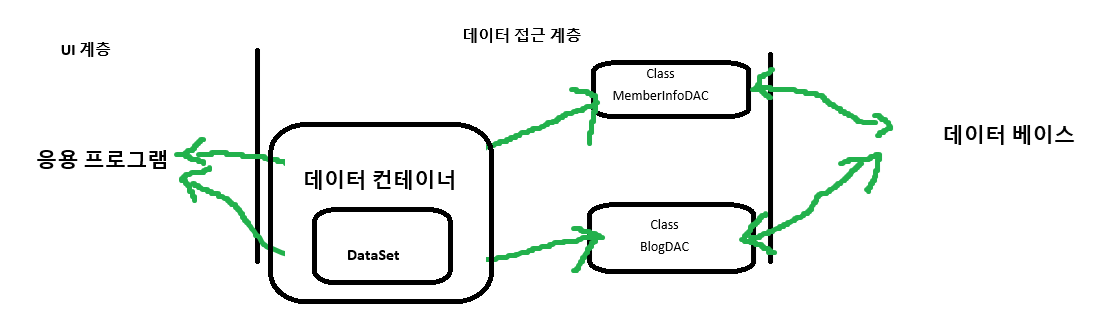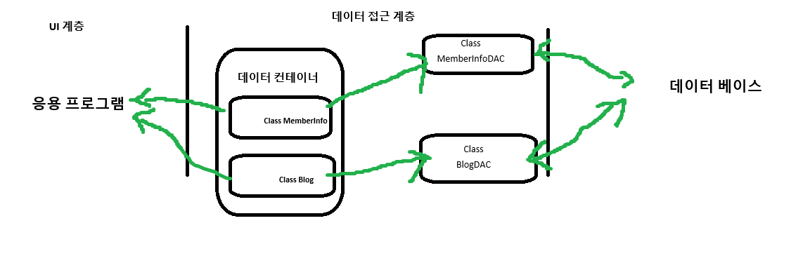 데이터 컨테이너는 db에 정의된 '관계형 테이블 구조'를 프로그래밍 언어에 정의된 타입에 대응시킨 것을 의미한다.